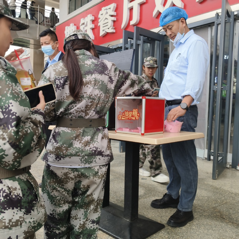 此外,餐饮中心持续拓展服务外延,以暖心举措迎接2025级新生。针对高新校区地铁餐厅、高铁餐厅,特别策划“光盘行动之抽奖领优惠券”特色活动。活动深度融合“爱粮节粮”倡导与“餐饮育人”理念,不仅通过实践引导新生树立珍惜粮食的意识,更在丰富菜品选择、满足多元口味需求的基础上,以实实在在的优惠传递学校关怀,让新生在紧张的军训之余,既能享受到可口餐食,又能从一餐一饭中感受到校园的温度,为初入校园的生活增添了别样的温馨滋味。