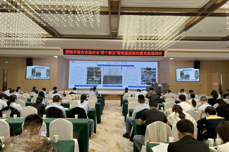 为深入贯彻落实食品安全“四个最严”要求,进一步压紧压实食品安全“两个责任”,全面提升全市不合格(问题)食品核查处置工作能力与水平,9月18日,渭南市市场监督管理局组织召开了全市落实食品安全“两个责任”暨食品核查处置业务培训会。全市A级食品生产经营企业食品安全总监、市局负责A级食品生产经营企业包保联络人、各县(市、区)局食品安全工作分管领导等共计260余人参加会议。渭南市市场监督管理局党组成员、副局长王耀峰、省级二级调研员周玉全出席会议。本次会议由市局食品安全协调科科长万亚斌主持。