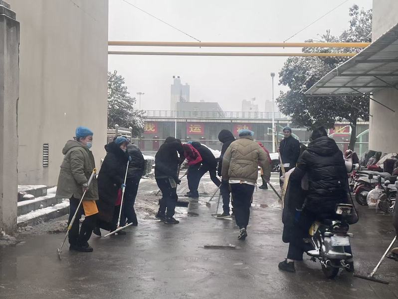 尽管天气严寒、积雪湿滑,大家仍以饱满的热情投身清扫工作。他们手持铁锹、雪铲、扫帚等工具,齐心协力清理路面的积雪与暗冰。忙碌的身影在白雪映衬下格外醒目。经过一个小时的持续奋战,主要通行区域的积雪得到有效清除,成功为师生开辟出一条安全通畅的“暖心路”。